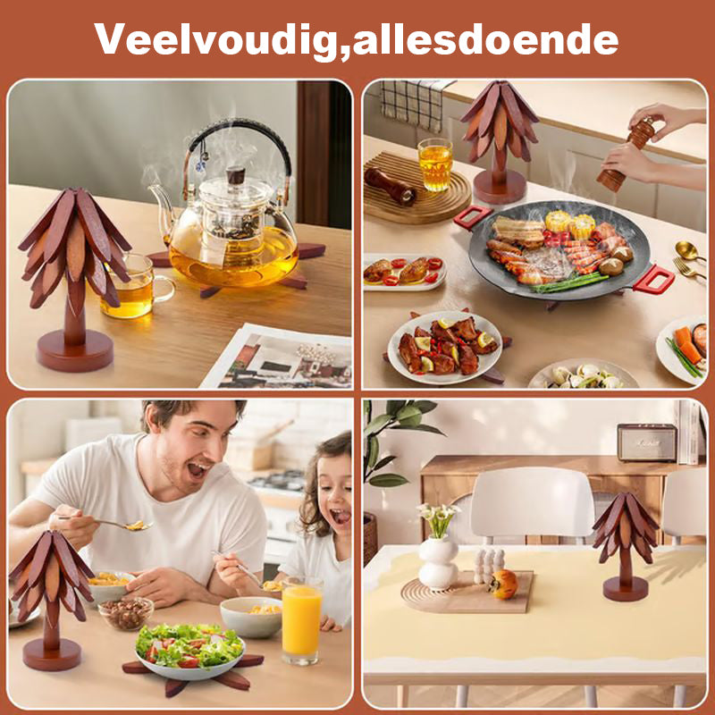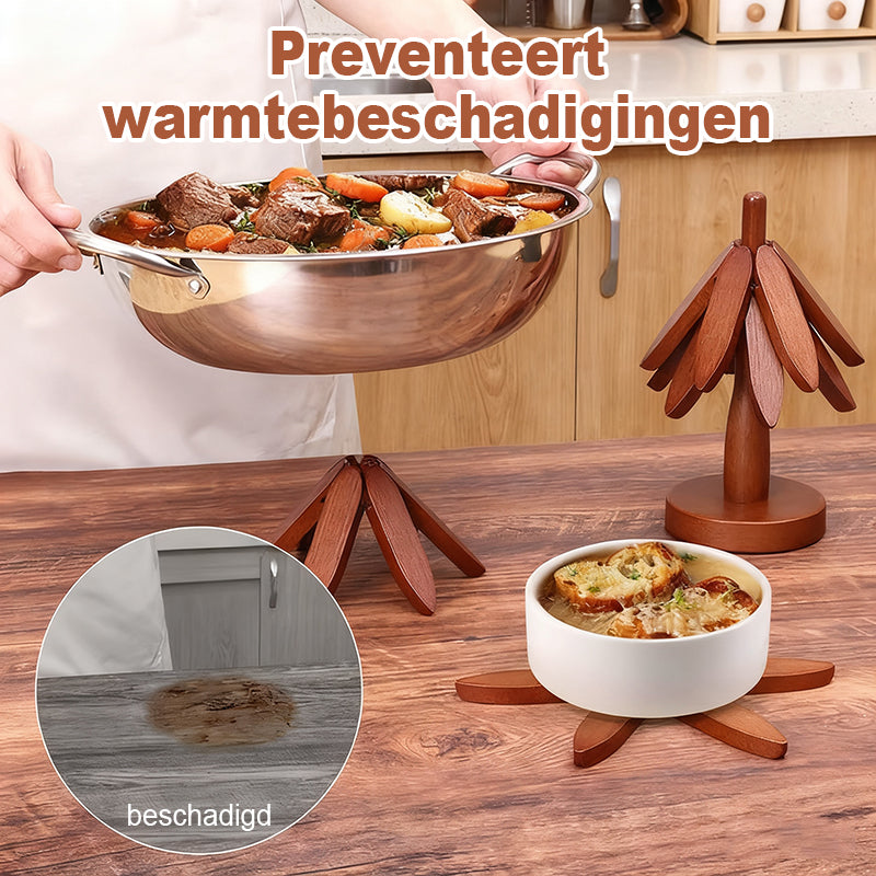 Hoogwaardige hittebestendige onderzetter van natuurlijk hout voor hete gerechten